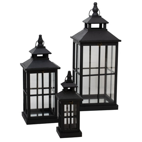 Mathilde Set Of 3 Black Window Style Lanterns With Open Top
