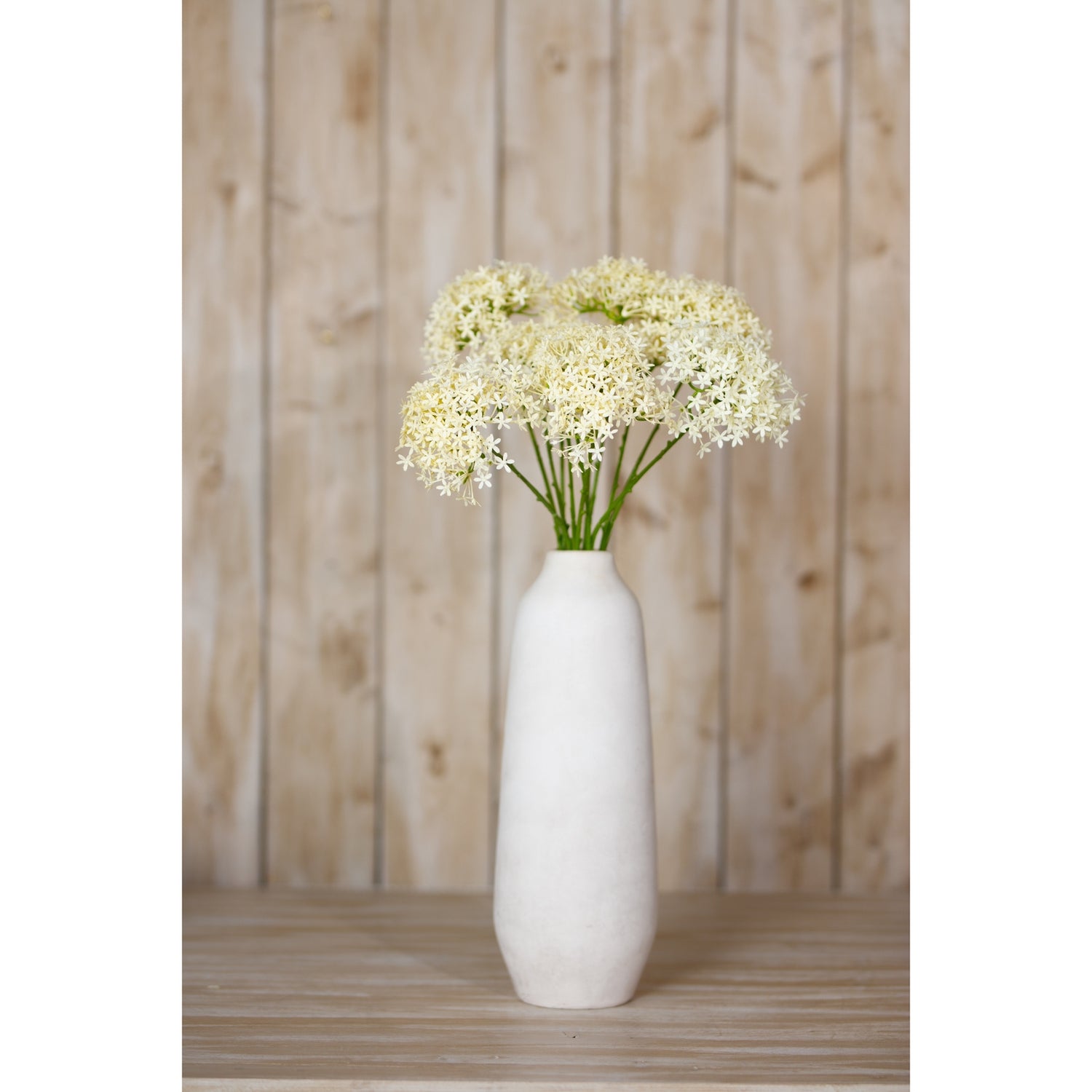 The Cream Allium Spray is a striking faux floral that adds a touch of elegance to any space. The delicate, lacy blooms of the Allium, also known as the ornamental onion, create a captivating visual interest. Crafted with meticulous attention to detail, this spray features multiple flower heads in a soft, creamy hue that exude a timeless charm. Pair this versatile piece with other natural elements like eucalyptus or olive branches to create a harmonious botanical display. Suitable for a variety of interior styles, from modern minimalist to rustic chic, the Cream Allium Spray is a must-have addition to any floral assortment.