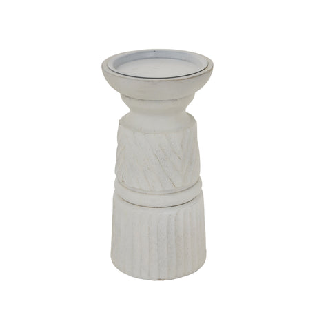 Medium White Carved Candle Holder