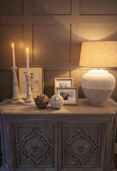 Chantal Natural Glow Taupe Ribbed Taper Candles
