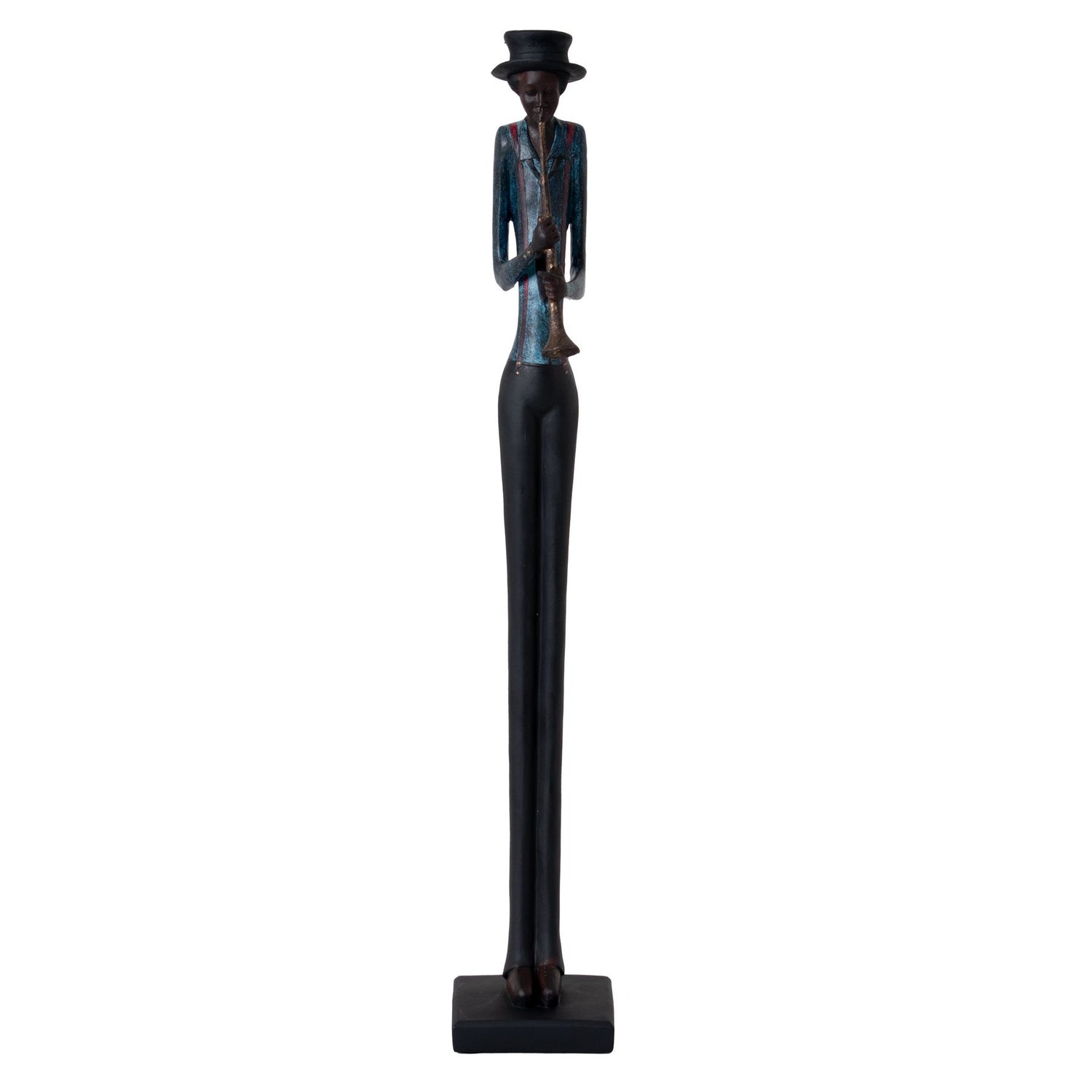 Standing Jazz Band Trumpeter a striking figurine that captures the essence of a talented jazz musician in a stunning, three-dimensional form. The figure's fluid, expressive stance and the intricate details capture the trumpeter mid-performance evoking the infectious rhythm and soulful melodies that define the jazz experience. Placed in a prominent position, the Standing Jazz Band Trumpeter will become a captivating focal point, drawing the eye and sparking the imagination of your customers. Beyond its aesthetic appeal, this figurine also serves as a versatile décor piece that can seamlessly integrate into a wide range of settings. From contemporary living rooms to vintage-inspired commercial premises, the Standing Jazz Band Trumpeter will complement and enhance the overall design aesthetic, adding a touch of sophistication and artistic flair.