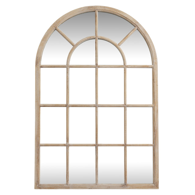 Reminiscent of architectural windows from bygone eras, this mirror captures the romance of weathered coastal cottages and countryside retreats through its distinctively aged timber frame . The arched silhouette draws inspiration from Gothic revival architecture, whilst the washed wood finish tells stories of sun-bleached shutters and salt-weathered pier posts . Each piece within this range celebrates the beauty of distressed textures, where natural grain patterns emerge through layers of purposefully faded pigment, creating depth and visual interest that mass-produced alternatives simply cannot achieve. The gentle curvature of the arch softens angular room corners, making this mirror particularly suited to spaces seeking warmth and character. Its substantial proportions command attention without overwhelming intimate settings, whilst the neutral palette seamlessly integrates with existing décor schemes. Trade customers will appreciate how this piece anchors entire room collections, serving as both functional necessity and decorative focal point. The washed wood aesthetic pairs beautifully with weathered metal candle holders, distressed ceramic vessels, and rope-wrapped accessories that share similar coastal or rustic sensibilities . Consider displaying alongside natural fibre baskets, aged brass picture frames, or wooden serving trays that echo the same artisanal quality. The mirror's generous dimensions make it ideal for hallways, bedrooms, or living areas where customers seek to create illusions of space and light. Its window-inspired design particularly appeals to those decorating period properties or modern homes aspiring to cottage-style interiors. The piece represents excellent value for retailers, offering customers the authentic aged appearance typically found only in genuine antiques, but with contemporary manufacturing reliability and consistent sizing that simplifies display planning and customer satisfaction.