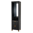 A tall, elegant drinks unit offering both storage and display, finished in a bold black tone. Dimension:39L x 50W x 183H