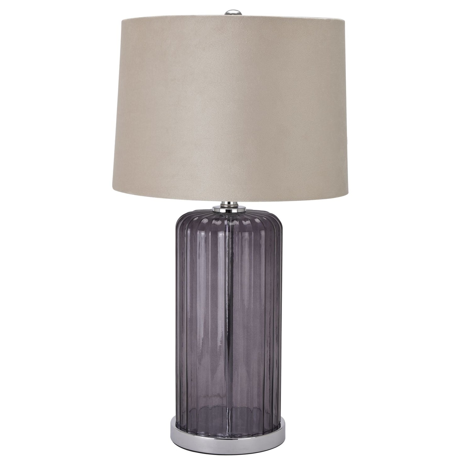 A remarkable fusion of artistry and luxury awaits in this metallic glass table lamp, where meticulous reeding creates an enchanting play of light across its lustrous surface. The sumptuous grey base rises gracefully, culminating in a neutral velvet shade that diffuses illumination to cast atmospheric warmth throughout any space. The intricate glass detailing reflects ambient light in mesmerizing patterns, making this piece an unmatched focal point for discerning clients. For a cohesive decorative scheme, pair this lamp with the Large Fluted Glass Display Bowl to echo its textural elements, or complement its refined aesthetic with the Ceramic Dipped Amphora Vase. The metallic finish harmonizes beautifully with both modern and traditional settings, while the ribbed texture adds dimensional interest that catches the eye from every angle. This lamp speaks to customers who appreciate subtle luxury and artistic craftsmanship, making it an essential addition to any carefully curated retail collection. For maximum visual impact, consider displaying alongside coordinating accessories like the Copgrove Collection Mirror to amplify its reflective qualities and create an arresting merchandising display that will resonate with design-conscious shoppers.