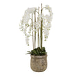 This is the Large White Orchid In Antique Stone Pot. Our floral brand, The Recipe, has curated an orchid collection of unmatched botanical accuracy. The attention to detail across their plentiful blooms, buds, visible root network and leaves really is second to none. This 5ft piece is the piste de resistance of the collection, boasting a beautiful distressed stone pot and supporting canes which add to its realism and premium quality finish. The perfect, premium quality floral focal point for any number of spaces that will elevate the feel of a room.